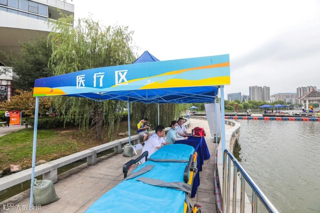 二、在医疗救助方面,活动下水点设置医疗救护点,配备2辆120急救车和相关医护人员,负责参赛选手、嘉宾的医疗保障。