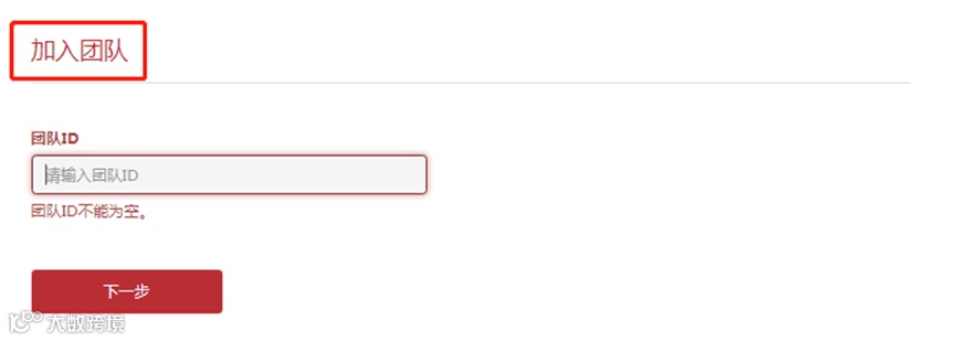 步骤二:输入团队ID后,点击下一步(注意不能有空格)
