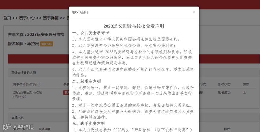 成功后即报名成功。报名成功后,可在我的报名信息中显示报名成功信息,也可在远安田野马拉松公众号菜单栏,点击「报名查询」进行查询。