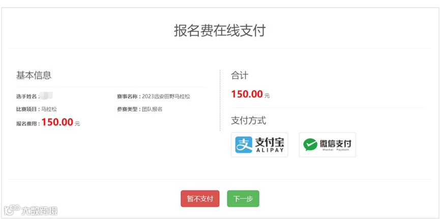 步骤八:进入支付页面,选择支付方式,点击下一步,支付报名费