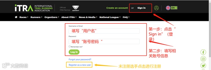 进入页面,点击“SIGNIN”登录正确的账号(未注册选手请先在ITRA进行注册)