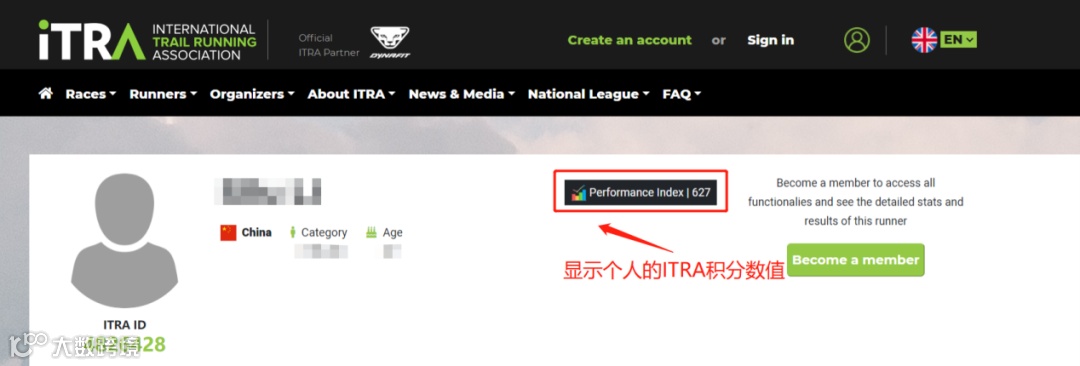 进入个人页面后,即可查询个人ITRA积分等内容