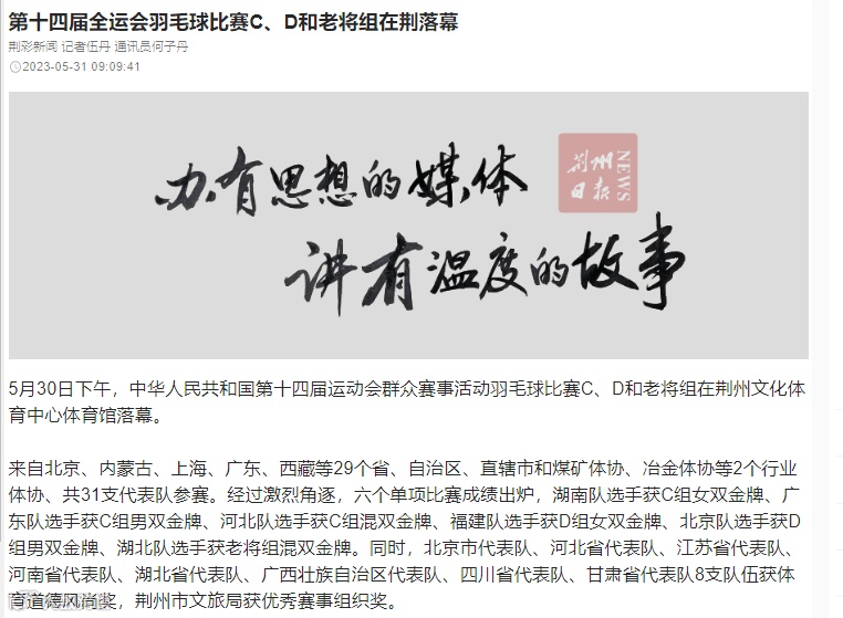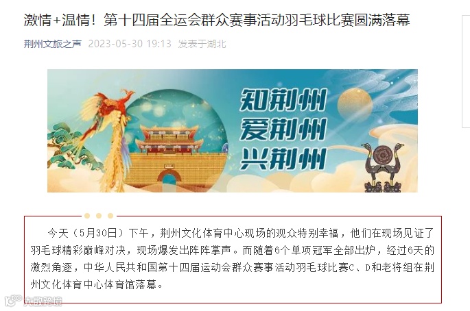 此次比赛是目前荆州承办的规格最高的国家级体育赛事,为了确保比赛圆满成功,荆州竞委会联合各部门对场馆设施设备进行全方位检查、测试,设置各类功能区域,全方位保障赛事的顺利进行,满足办赛需求。在酒店入住、交通接驳、医疗救护、消防安全、志愿服务等方面为运动员提供完善的比赛支持,打造良好的赛事体验。受到了国家体育总局、中国羽毛球协会、参赛运动员、裁判员的高度好评。