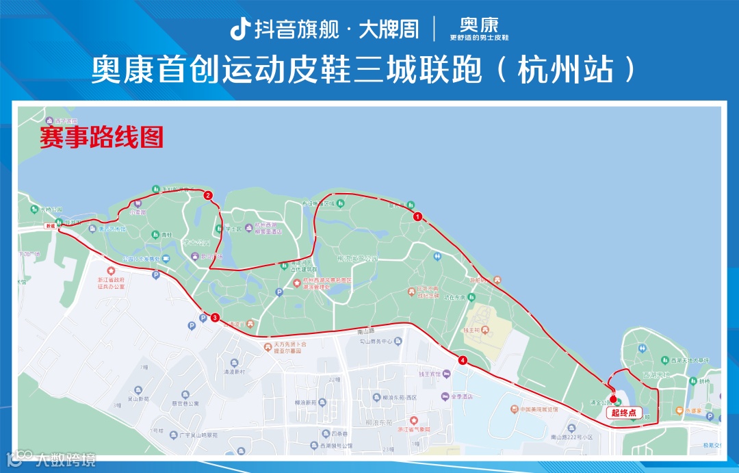 杭州站(西湖东侧涌金公园):涌金公园(起点)-南山路-柳浪闻莺-长桥公园折返-沿南山路-西湖天地-涌金桥-涌金公园(终点)