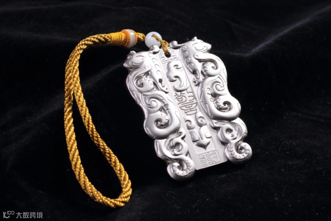 奖牌正面还镶嵌有獠牙兽面纹饰,其源于洪江市高庙遗迹出土的兽面,高庙遗址被认为是全国规模最大年代最早的祭祀文化遗址。芙蓉楼与高庙遗址兽面,展现着黔阳古城历史文化渊远流长。