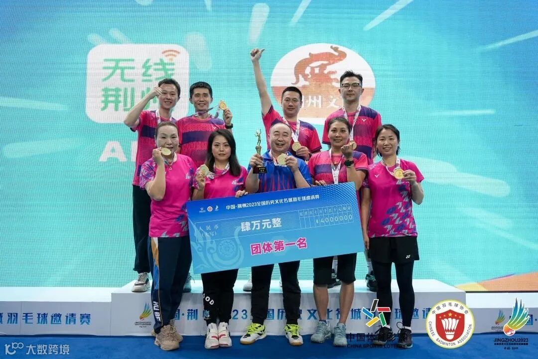 最终,杭州丽仁股份代表队从49支队伍中脱颖而出,夺得中国·荆州2023全国历史文化名城羽毛球邀请赛冠军,获得奖金4万元。武汉中新源嘉荣医疗代表队、西安柒米俱乐部代表队分获第二、第三名,奖金分别为2万元、1.2万元。