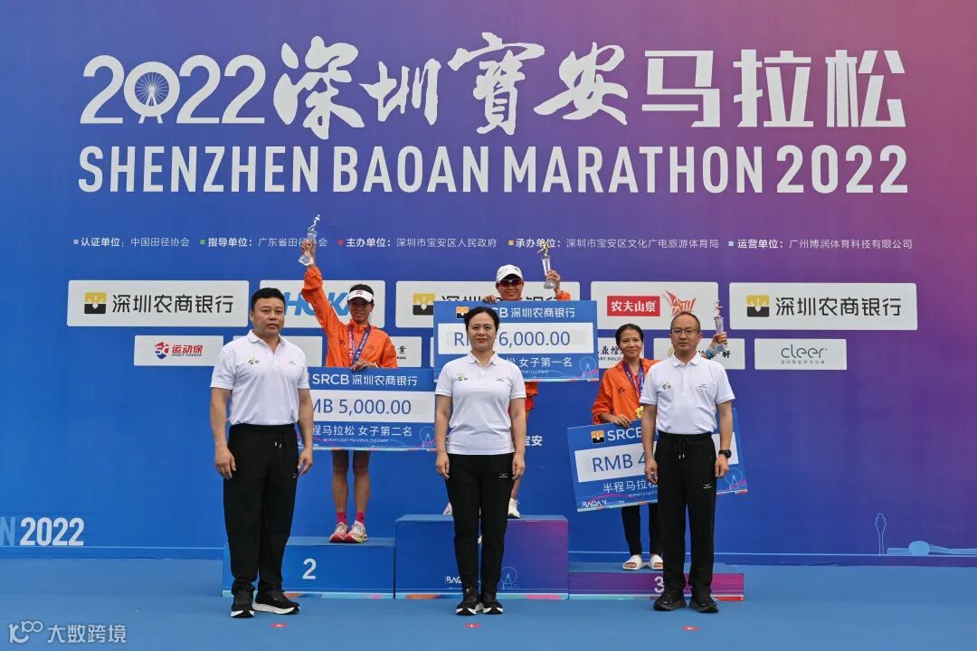 (半马女子组前三名颁奖现场)