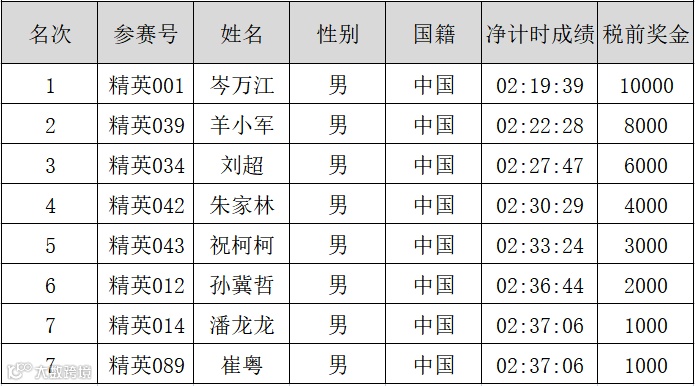 凡参加本次比赛马拉松项目的中国籍选手