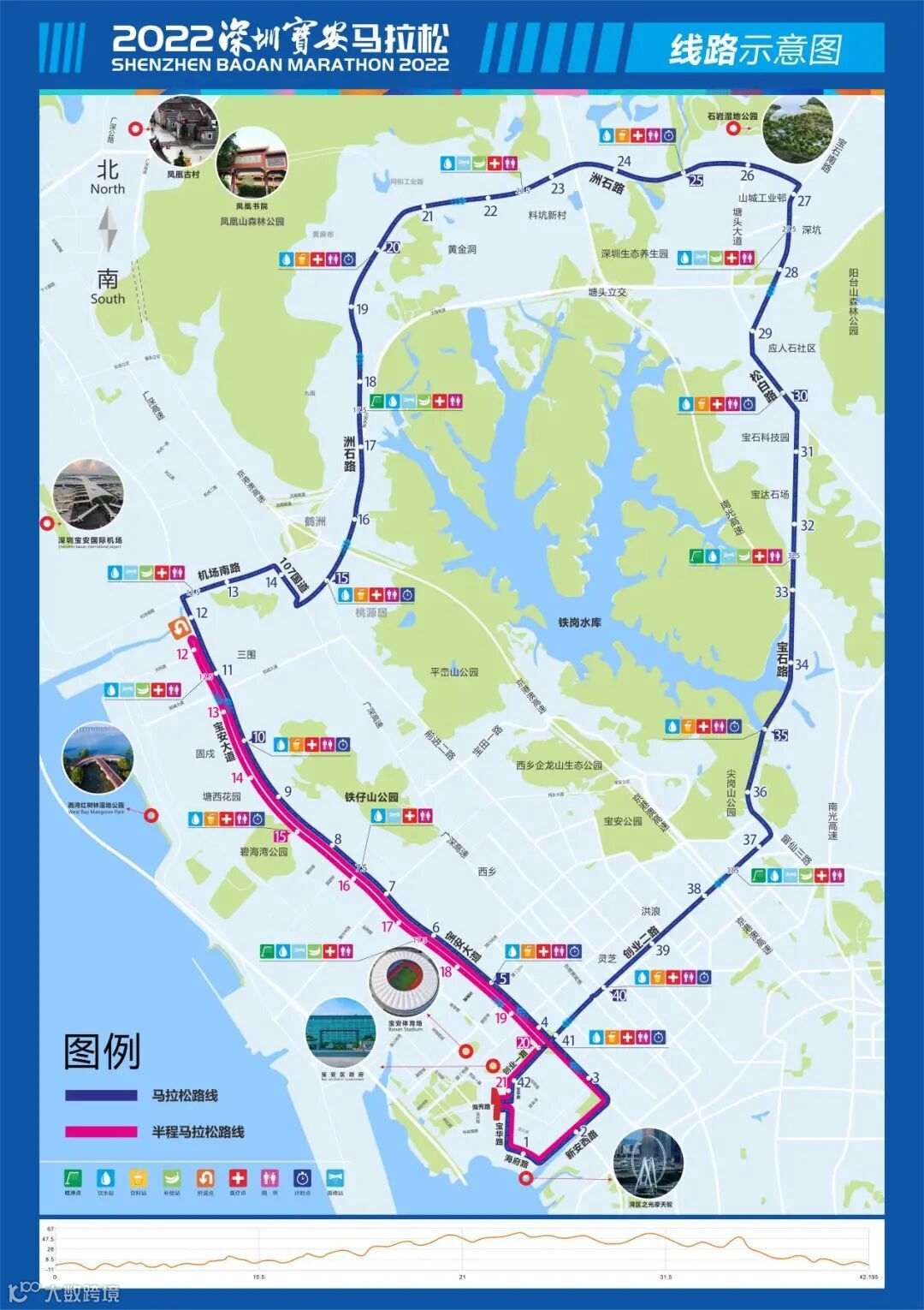 全程选手继续前进,右转进入机场南路,开始感受宝安精彩丰富的文化。后有个小坡,跑友需要注意调整配速,随时抬头可以看到进出深圳宝安国际机场的飞机低空掠过地面,用引擎的轰鸣声为您加油鼓气!