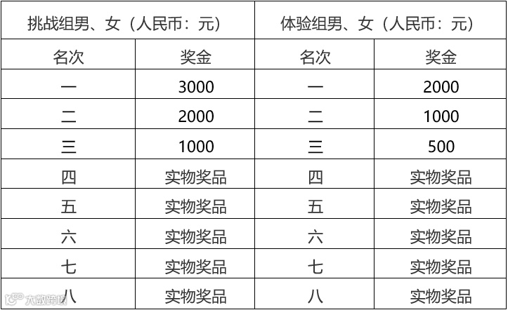 (一)挑战组、体验组按选手枪声成绩奖励男女前八名;