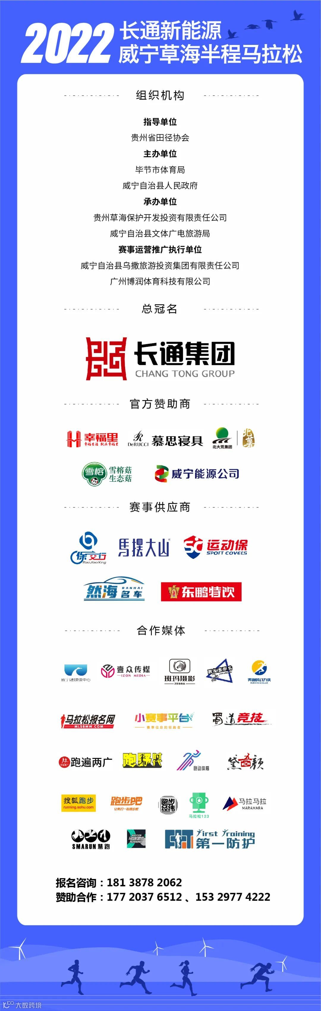 本次赛事由贵州省田径协会指导,毕节市体育局、威宁自治县人民政府主办,贵州草海保护开发投资有限责任公司、威宁自治县文体广电旅游局承办,威宁自治县乌撒旅游投资集团有限责任公司、广州博润体育科技有限公司运营推广执行。