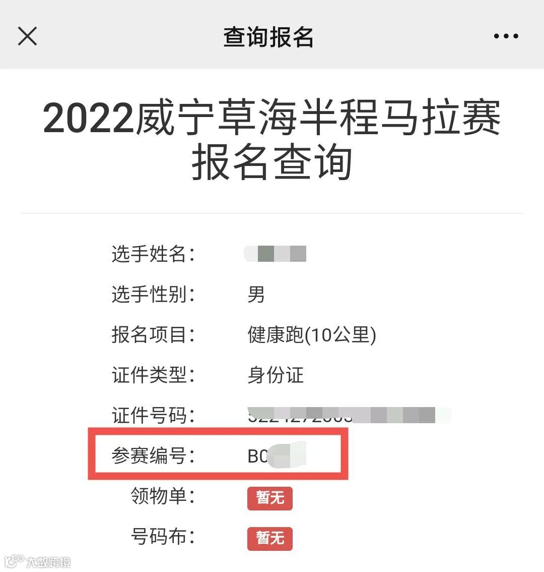 即为参赛号码布的号码