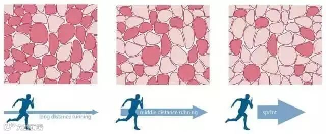 马拉松运动员的肌肉中,慢肌纤维的比例要占到90%以上;而顶级百米运动员的肌肉中,主要是快肌纤维,慢肌纤维占比不超过5%。