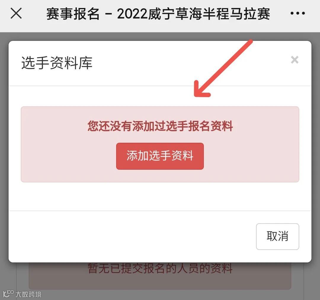 首次注册的新用户,需要提交选手,点击添加选手资料