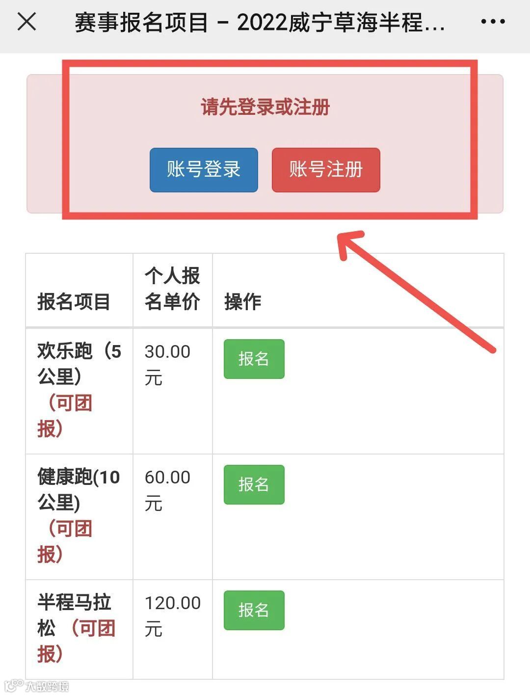 3、关注威宁草海半程马拉松官方公众号,点击“立即报名”