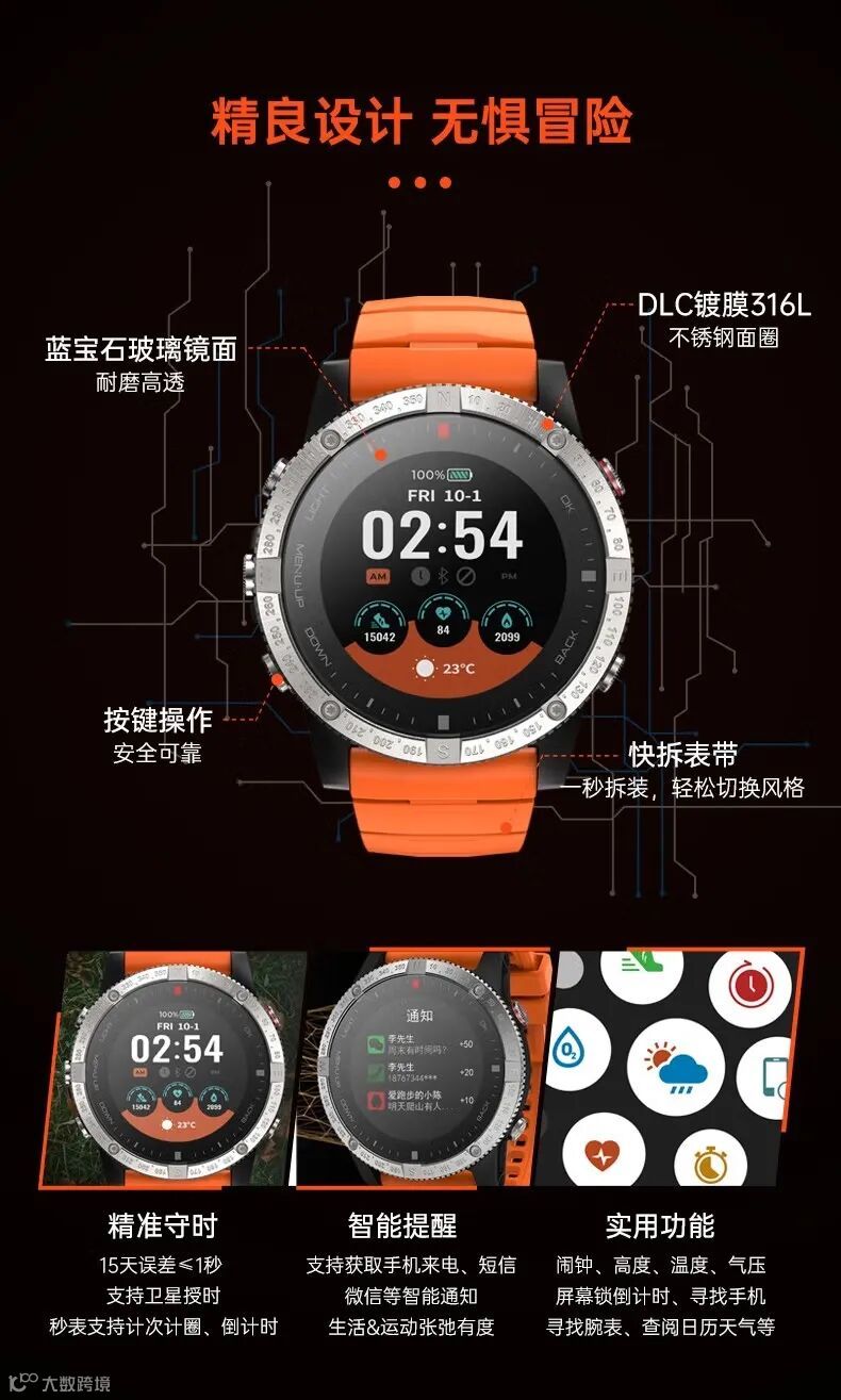 这款手表表盘采用的是和苹果同等级的玻璃镜面,为了让数据更加准确,如骏将北斗、GPS、GLONASS、QZSS全都给搬到了这小小的手表之中,实时的环境监测功能,让你实时了解海拔,气压,温度等环境,AI算法计划定制训练计划,并实时监测和指导,该有的功能应有尽有,我们凭什么不支持他?