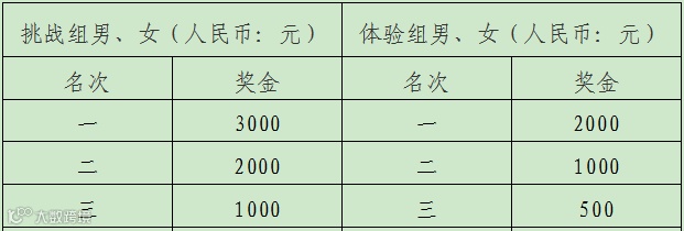 1.挑战组、体验组按选手枪声成绩奖励男女前八名,其中前三名为现金奖励,四至八名为实物奖品;