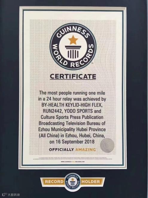 打破“24小时之内1英里接力跑最多人数的”吉尼斯世界纪录;2017黄马最佳组织团队