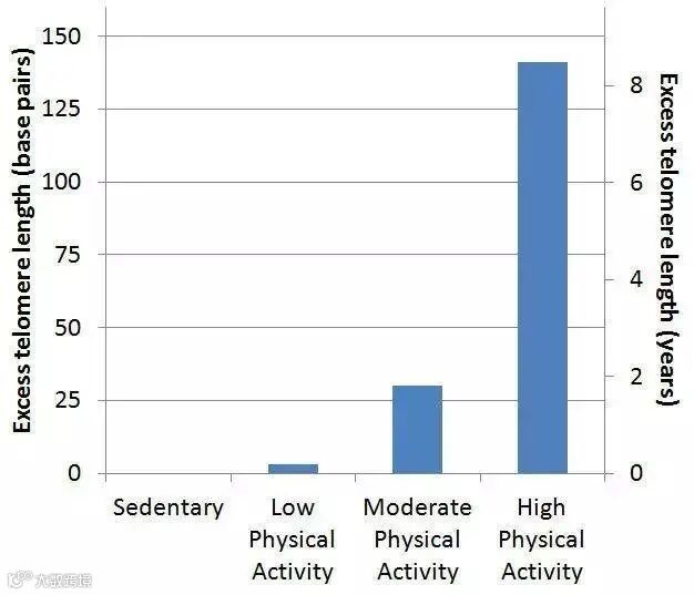 塔克分析了6千个成年人的DNA测试数据,通过对比他们的端粒长度与运动强度之间的关系,发现运动确实有利于保护端粒长度,而且运动强度越大,端粒长度就保护越好。