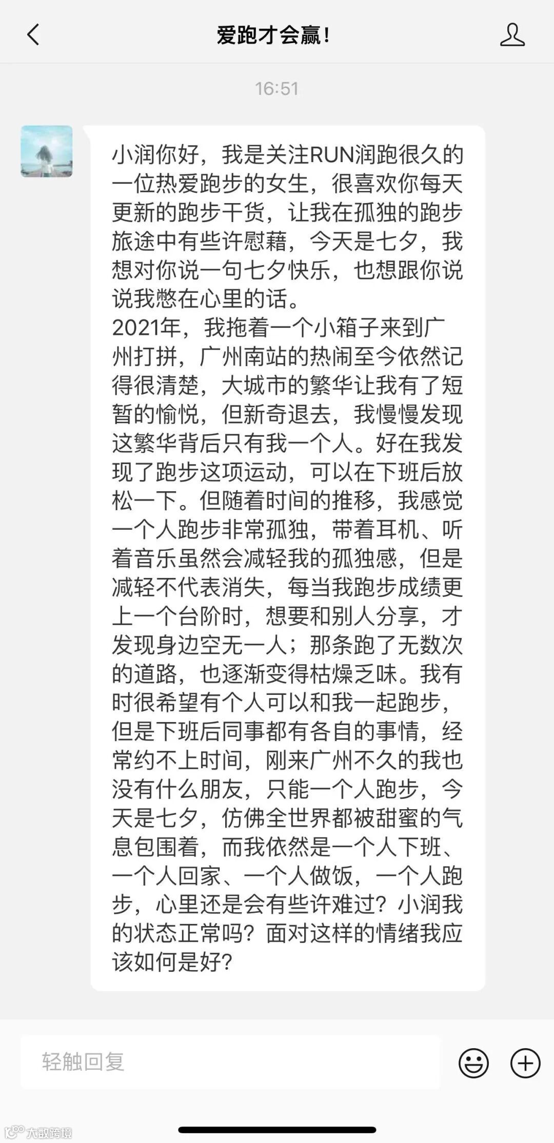 我相信这位跑友遇到的情况,可能是很多人正在经历或是已经经历过的。