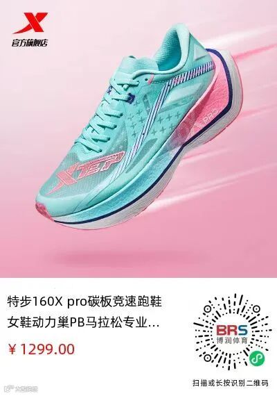 2019年中国马拉松百强榜单中,前10名中有7名穿着特步160X系列跑鞋。