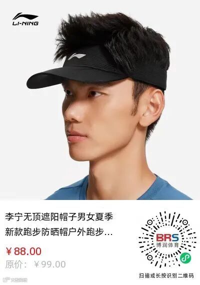 李宁夏季户外跑步防晒空顶帽