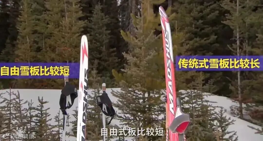 而传统式滑雪板有很明显的弓形弧线,滑行部分需要打滑蜡,中间蹬动部分打防滑蜡,这种设计可以让运动员在雪槽里加速滑行。