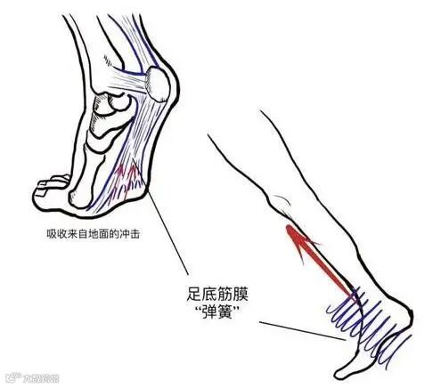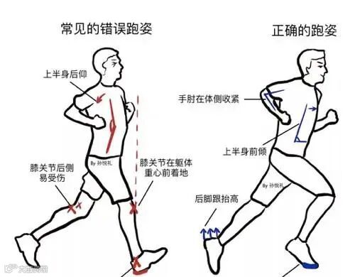 正常跑步时,身体稍稍前倾,每迈出一步,脚掌在身体重心正下方踩到地面,足底筋膜和足弓像弹簧一样把地面反冲力吸收掉,可以最大程度地减少其余部位的损伤。