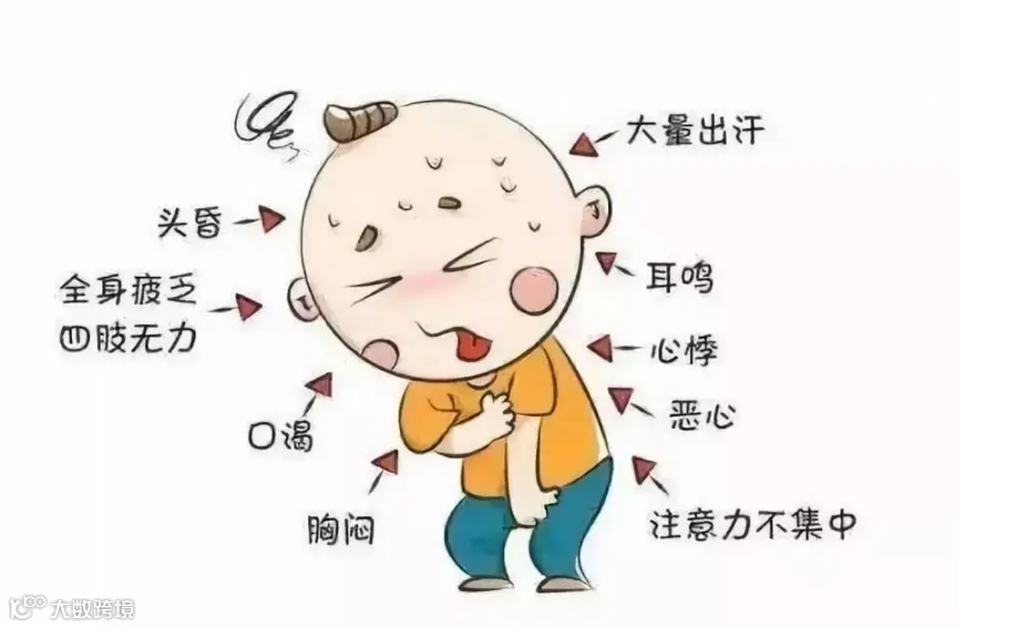 这就属于比较严重的情况了,包括脱水,头晕,恶心,身体核心温度居高不下,可以达到40摄氏度。
