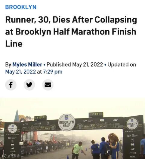 上周末(美国当地时间5月21日)在布鲁克林半程马拉松比赛中,一位名叫大卫-莱希曼的32岁男子参赛者,在冲过终点线后倒地失去意识,尽管被送往当地医院,但最终还是不幸身亡。由于当地天气炎热又潮湿,除莱希曼之外,还有十余人出现状况,其中五人情况严重。