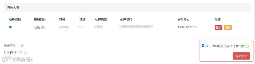 6.仔细阅读报名须知,并点击我已仔细阅读并接受《报名须知》;