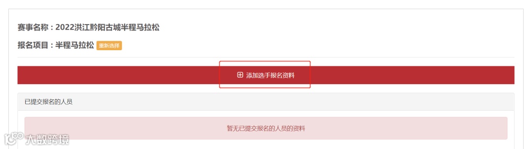 2.进入赛事报名页面后,点击添加选手报名资料;
