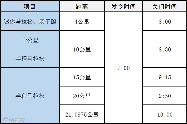 (三)起跑顺序:特邀和精英选手、半程马拉松大众选手、十公里大众选手、迷你马拉松选手、亲子跑选手顺序从前往后排列。