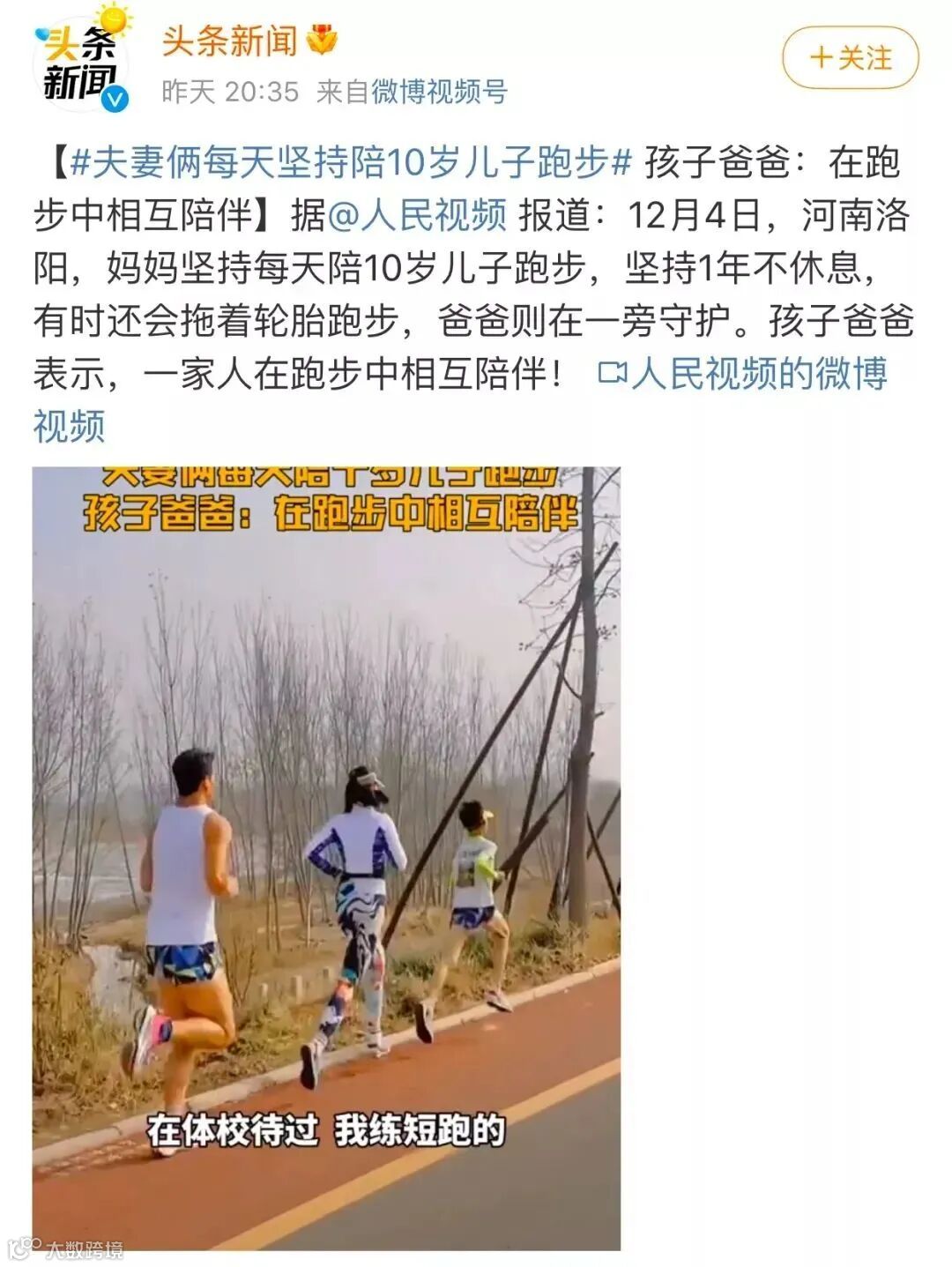 接受采访时,爸爸谦虚地表示,也没啥特别的,就是他和妻子每天都坚持陪孩子跑5公里而已。