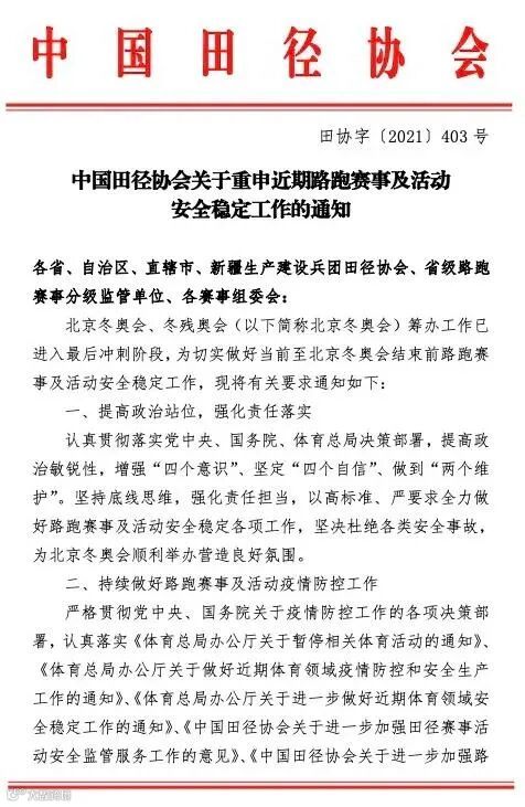 最新热点丨中国田协又出通知啦,事关路跑赛事及活动安全稳定