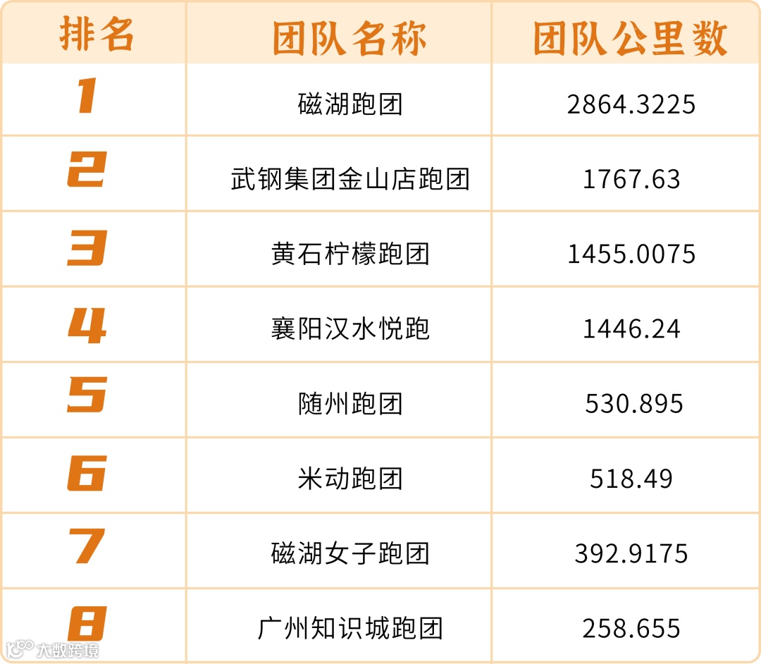 根据团队累计跑量进行排名