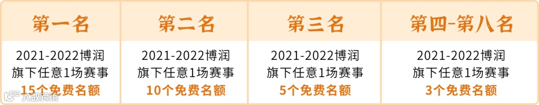 任意1场赛事名额1个