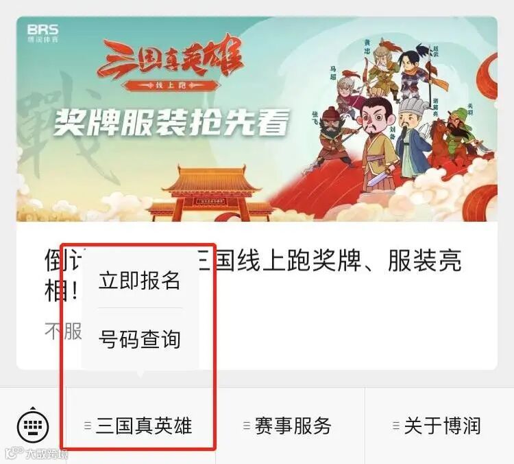 也可进入“RUN跑”微信公众号,点击菜单栏——“三国真英雄”,进入对应通道。