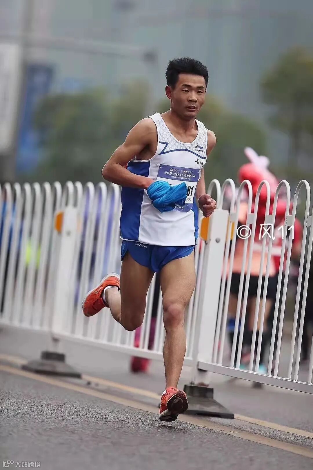 38公里之后,领先选手开始提速,逐步拉开了距离,仁青东知布、彭建华、杨绍辉领先,39公里之后,杨绍辉稍微落后,彭建华和仁青东知布进行激烈的争夺。
