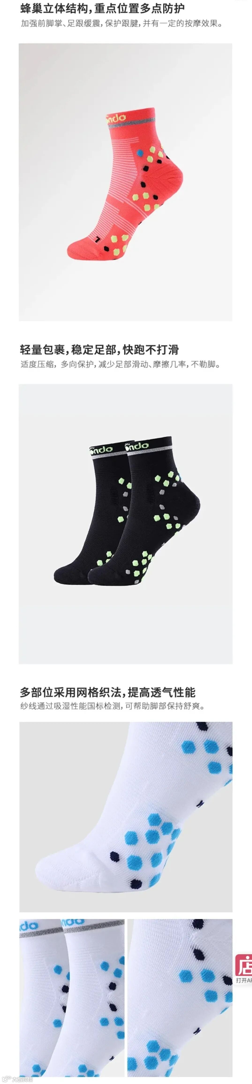 蜂巢立体结构,重点位置多点防护。适度压缩,多向保护,减少足部滑动、摩擦几率,不勒脚!