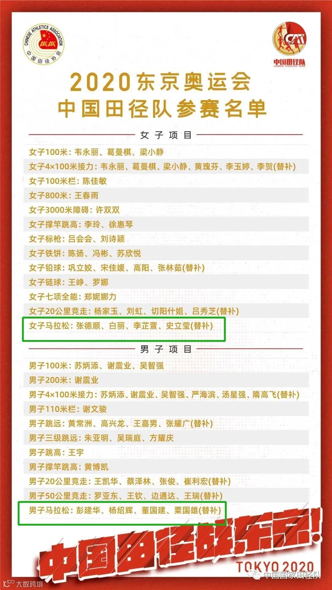 中国田径队参赛名单