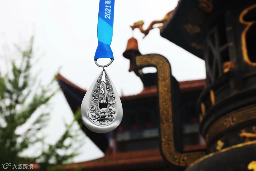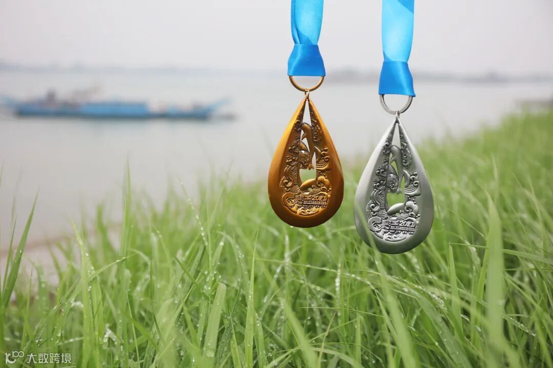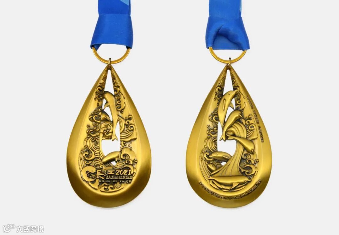 奖牌整体造型形如“水滴”,象征每一位跑者如同千千万万的小水滴汇聚在长江,以此寓意每一位长江之子对母亲河的赞美和致敬。