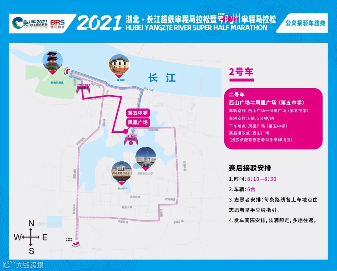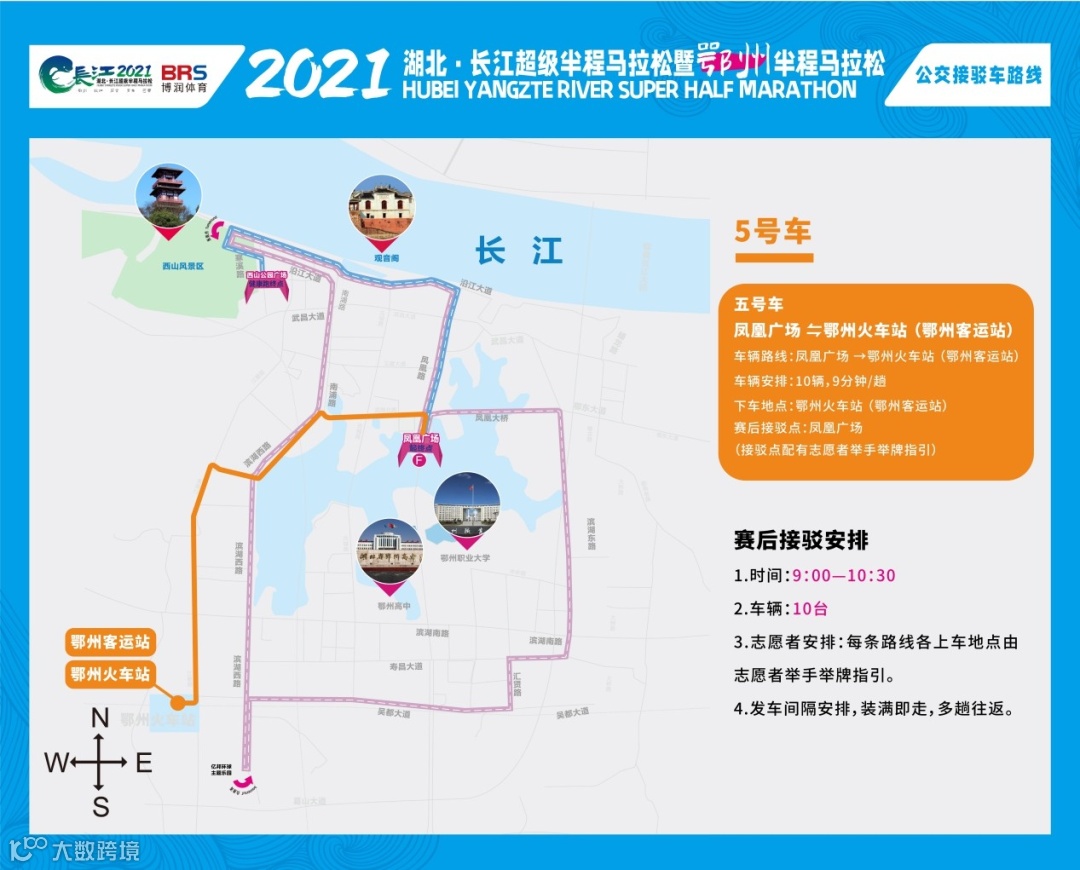 3、凤凰广场发车点位于半马终点莲花大桥隔离栏南侧。