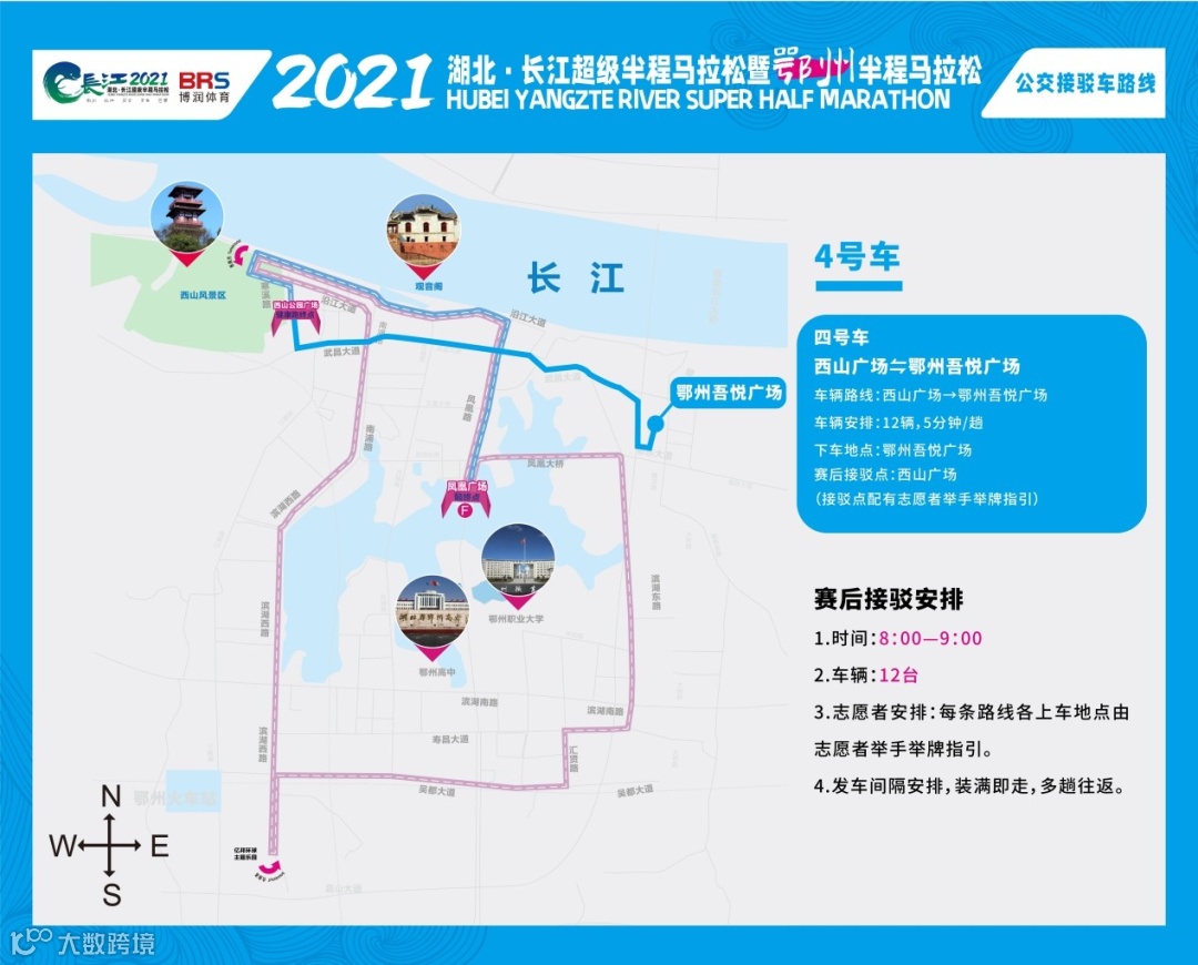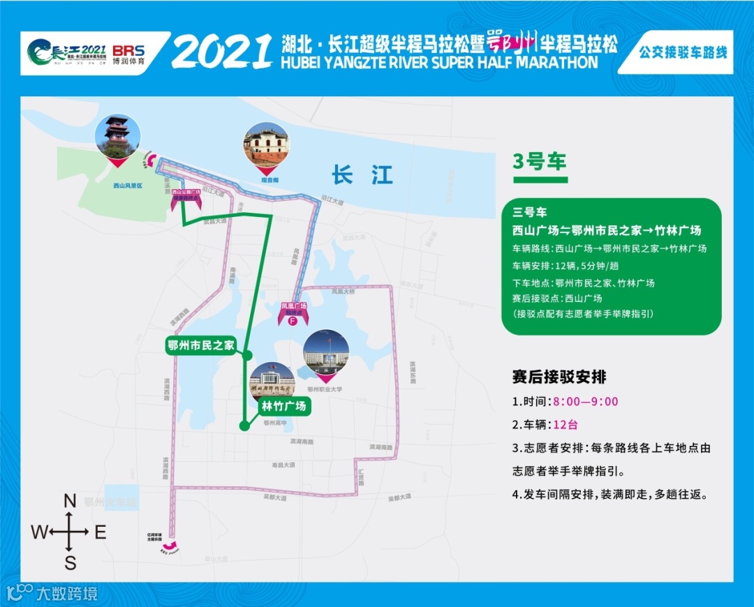 路线:西山广场→鄂州市民之家→竹林广场发车时间:8:00—9:00