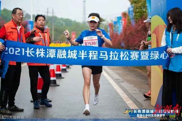 2021长嘉汇半程马拉松,以1小时18分09秒的成绩获得女子冠军。