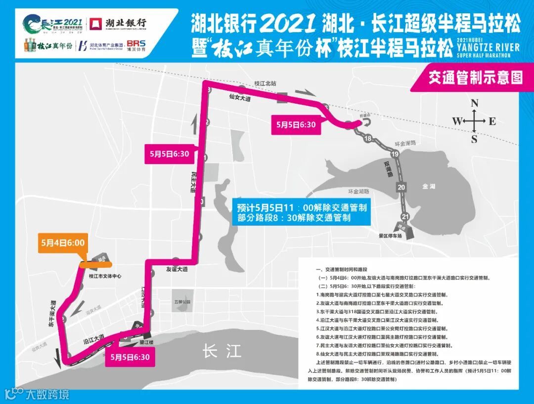 5.江汉大道与沿江大道灯控路口至公安局灯控路口实行交通管制。