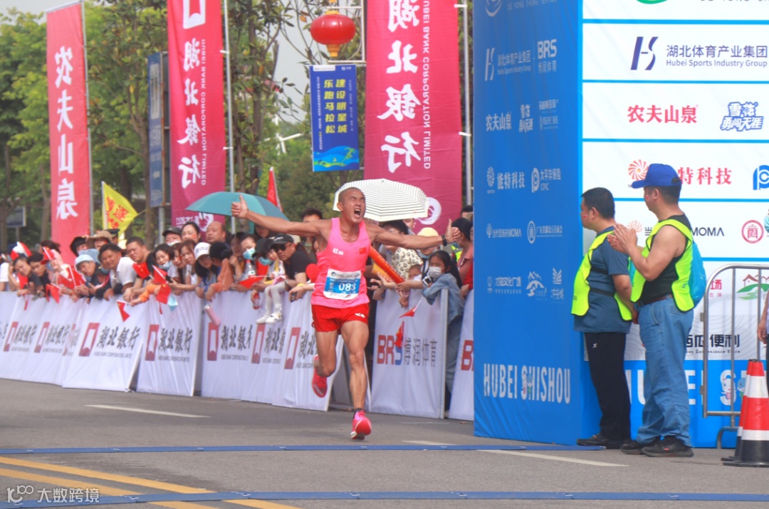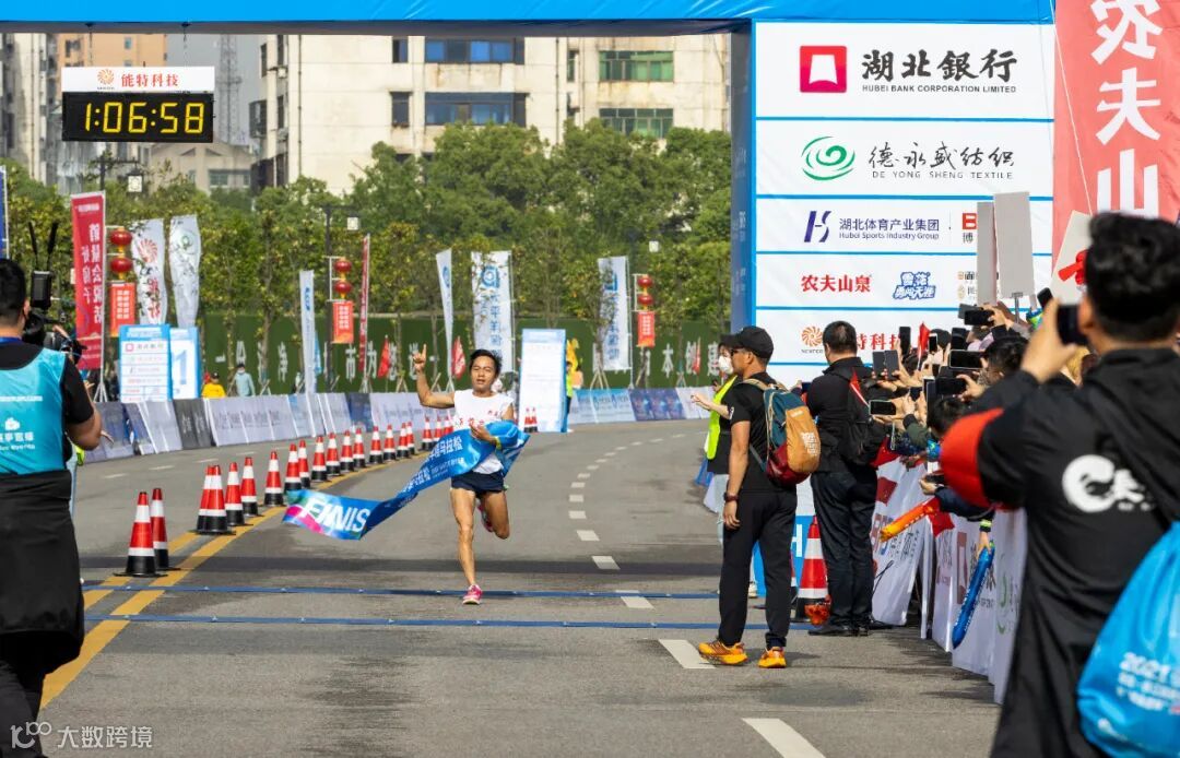 高光瞬间——半程马拉松男子冠军舒常华冲线