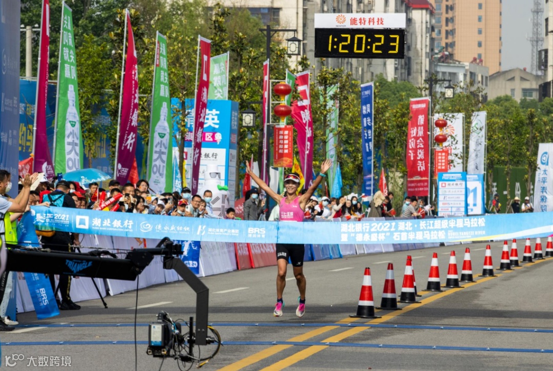 高光瞬间——半程马拉松女子冠军殷晓雨冲线
