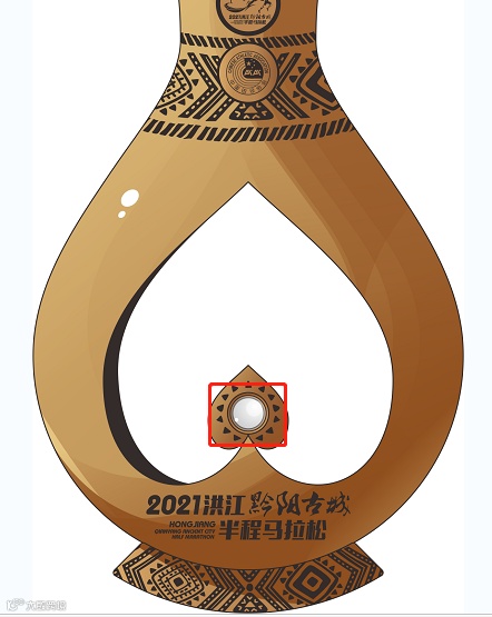 迷你、亲子跑的纪念奖牌在设计灵感上更突出了洪江的地域特色及湘西文化。整体造型上延续了半程及十公里完赛奖牌的“玉壶”造型,中间以少数民族的独有图腾及文化符号形成圆形包裹着中间的一颗“冰心”,以此彰显洪江是作为湘西文化较重要的发源地的厚重历史。