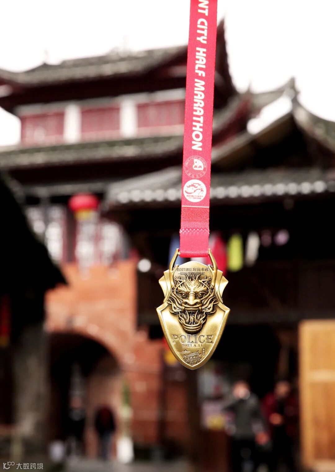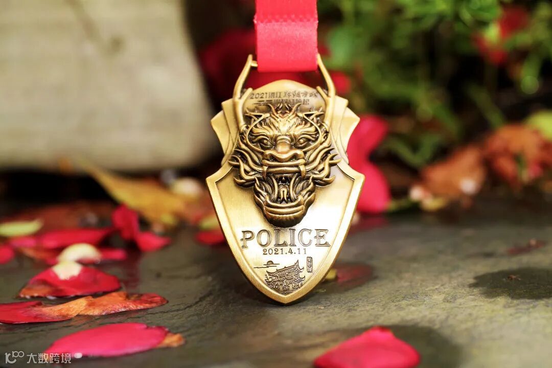 本届洪马为提升赛事的安全系数,保障参赛者顺利完赛,增设了警察护跑团赛中赛。其中为了突出警察护跑团的特别与贡献,特制作了专属纪念奖牌。